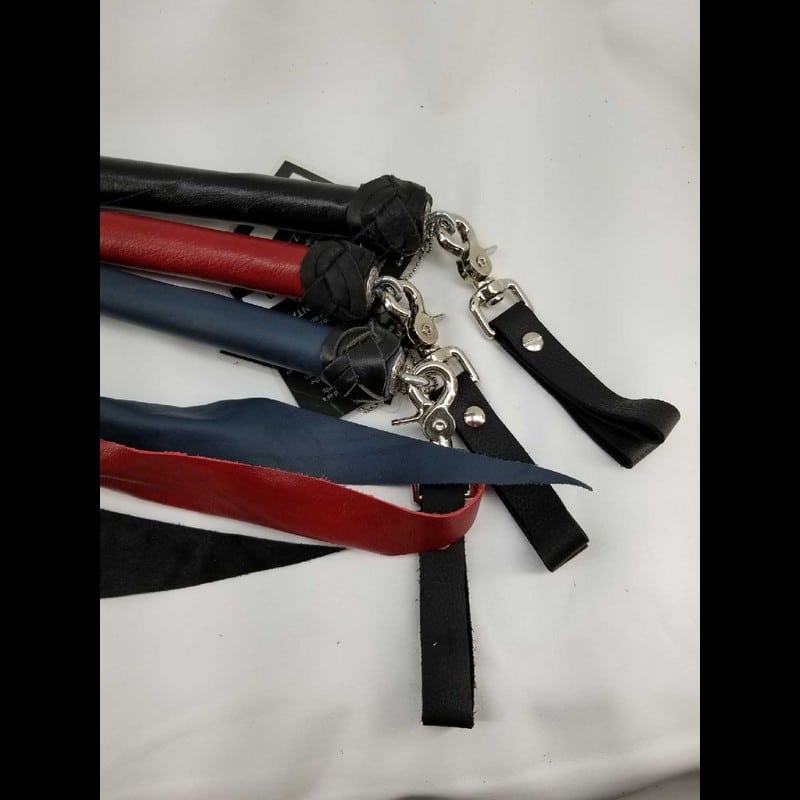 These Mini Dragontails have the black leather loops for your fingers. Each has two loops for two fingers on each mini tail. Buy a matching pair to enhance your play time. 4 week turn around time from time of order to delivery, each piece is custom made per order.